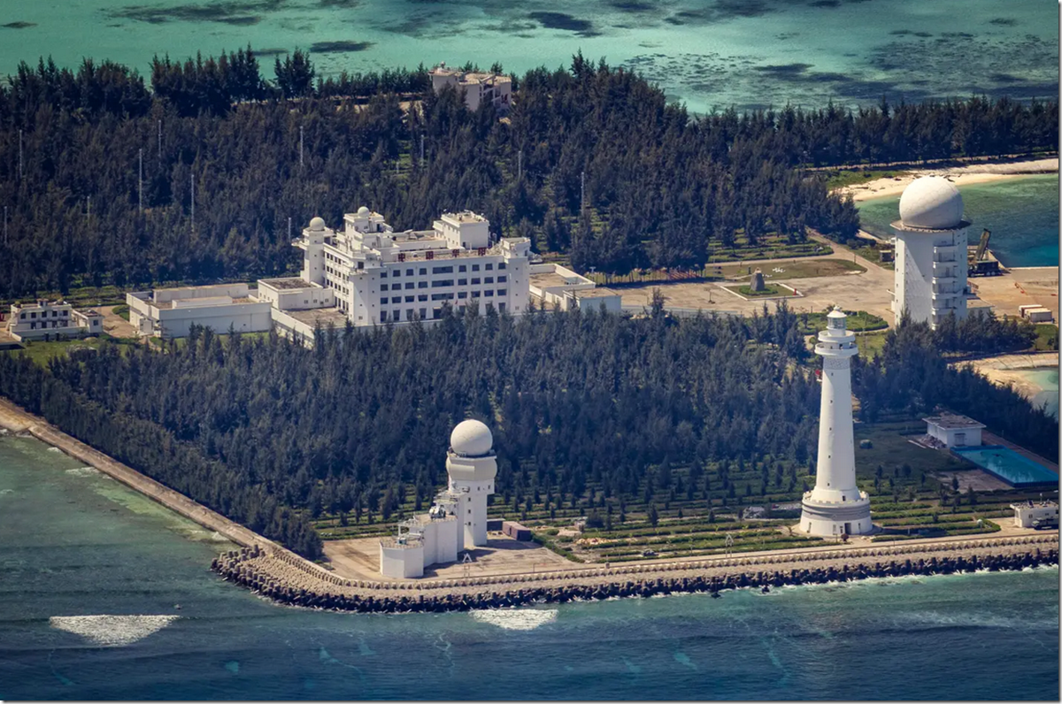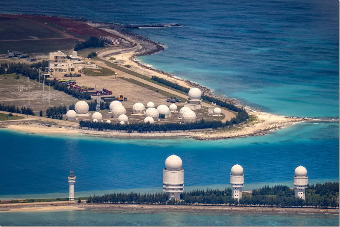 2022年10月25日,EA航拍的永暑岛一角,这个位置有大量的雷达群,为啥这么多,就不得而知了,或者是频率和角度有差异,而且也有主备设计。不得而知