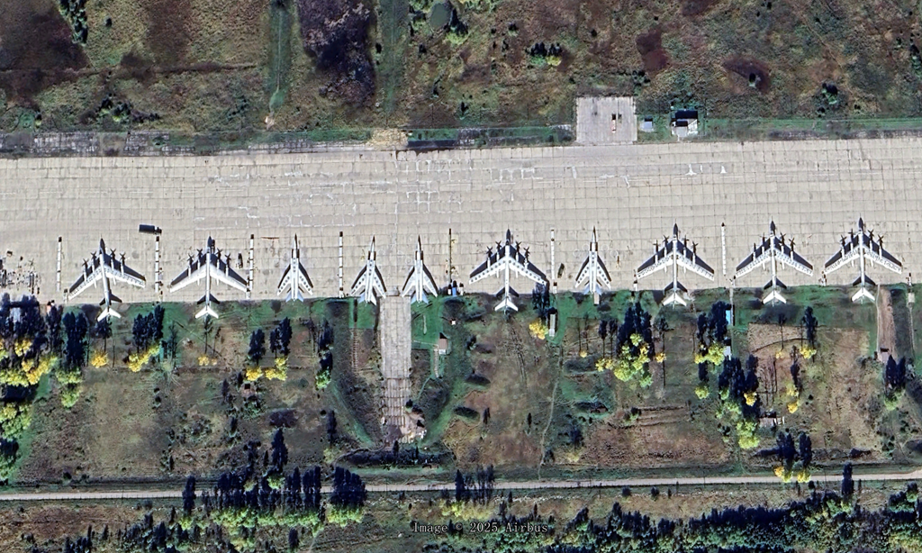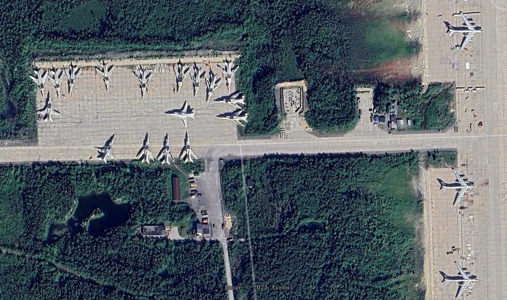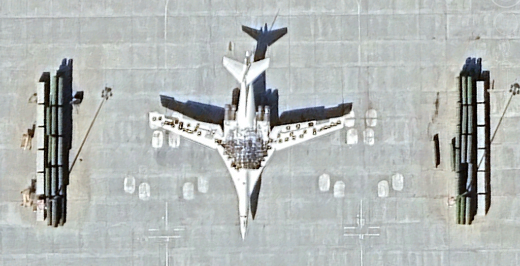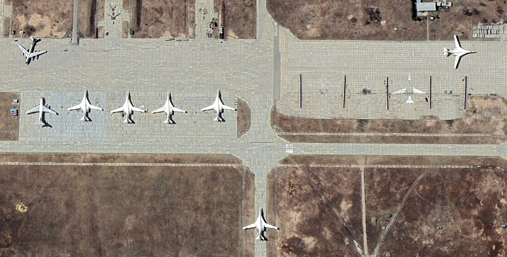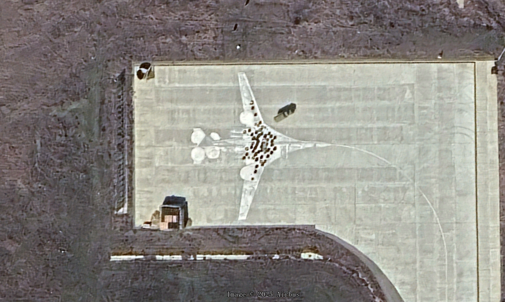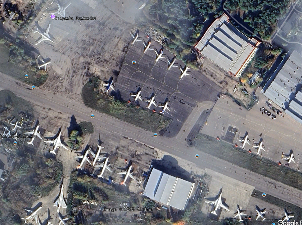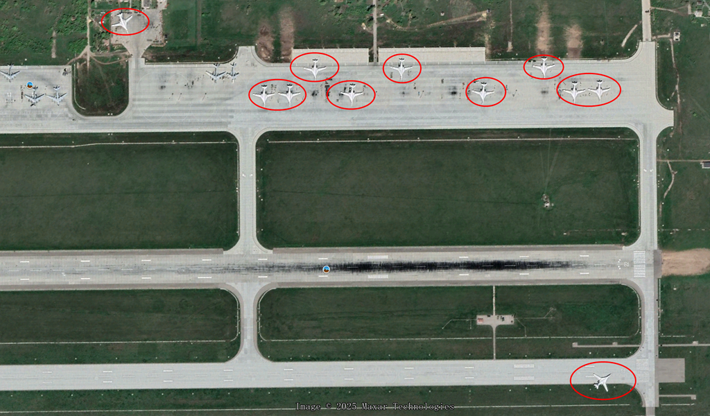 5、恩格斯-2空军基地 (Engels-2 Air Basem,2025年3月):有两架Ty-160,机身上面有轮胎打码,还有一个打码的地面绘画。另外还有少量图95,这个是Ty-160的主要机场,2022年还有11架Ty-160