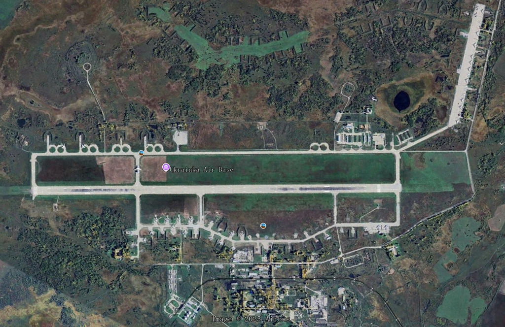 2025年6月,衛星影像揭露俄羅斯貝拉雅 空軍基地在烏克蘭「蜘蛛網行動」襲擊後的慘重損失,圖中清晰標示多架Tu-95 戰略轟炸機及至少一架Tu-22M3 轟炸機遵被摧毀或可能受損。(圖:Umbra space / Chris Biggers)