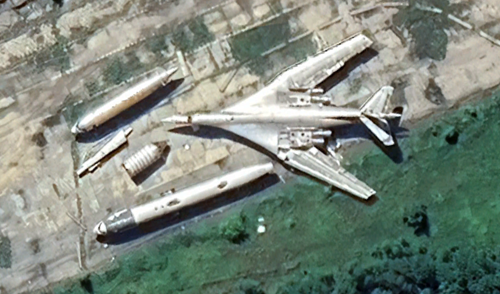 2、茹科夫斯基试飞院:两架Ty-160看上去比较完整。还有两个残骸,两架相对完整的160的位置也是有变化的,看上去是在维修