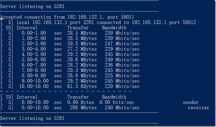4、UDP:使用-u参数,可以用UDP协议测试带宽,性能更容易达标。但是又丢包问题