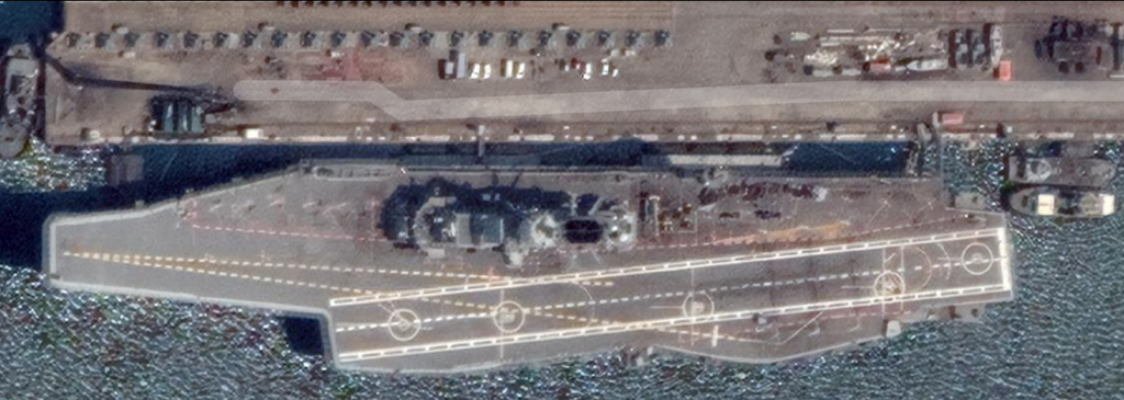 网上的卫星地图,应该是2015年最后一次下水前的维克兰特号