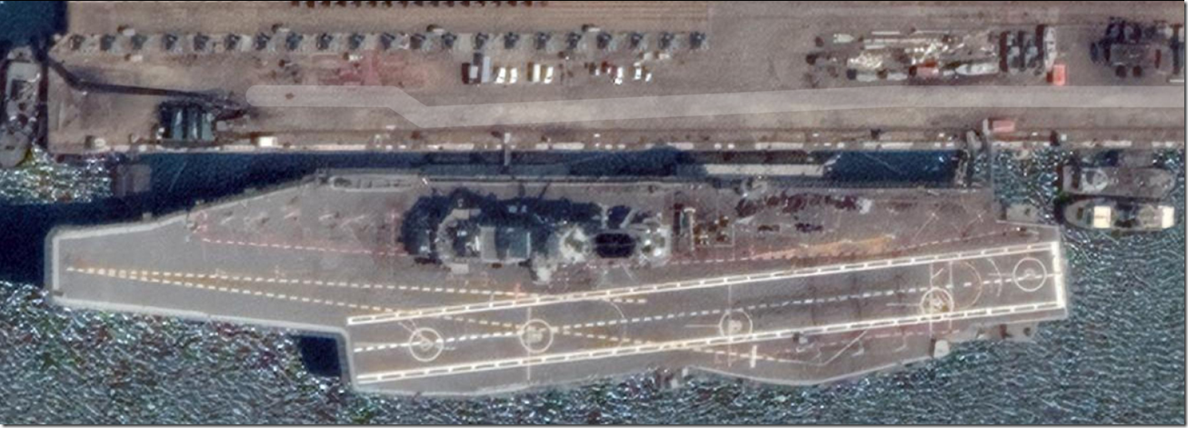 卫星地图:位于卡沃港的R33号航母,码头上没有太多的建设,看来还需要很长的建设周期