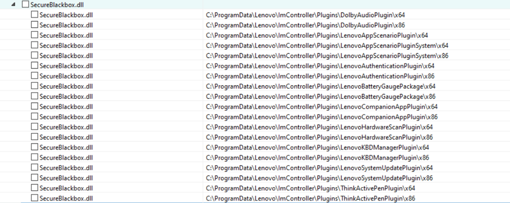 2、还有某些软件设计不良造成的,最典型的是联想的软件:SecureBlackbox.dll,在其自己的目录下,重复19次,占用空间72MB,看来这个LX的软件缺乏好的规划和设计!